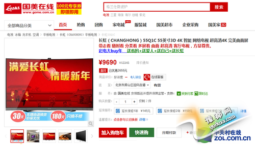 相对于普通电视而言,曲面屏电视在设计上更符合人体工程学,特别是观影效果更为出众。目前在国美在线中,这款电视从12345元优惠至9690元,降幅达到了2655元之多。这款电视除了配备有4K超高清大屏之外,还加入了四看功能,具有带走看、随时看、分类看和多屏看,可以给用户带来全新的智能电视体验。目前降至万元以下的价格非常实惠,值得高端用户入手。