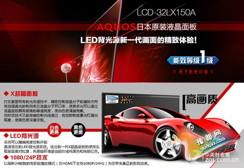 夏普LCD-32LX150A是一款32英寸蓝光高清电视,使用了日本进口的X超晶面板,画质上十分有保证。LED背光源节能环保,确保了屏幕亮度的整体均衡。除此之外,还加入了1080/24P技术以及数码环绕立体声技术,为用户带来了出色的音质表现。目前国美在线中报价为1699元,值得入手。