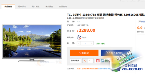 TCL L39F1600E是一款39英寸智能电视,亮银色的外观十分别致。电视内置了WiFi无线网络功能,在智能应用方面,为大家准备了应用商店,还可以关注正版在线视频节目。除此之外,内置的鹦鹉螺音响系统,提升了音质表现力。目前在新蛋网中价格最低,仅售2288元。
