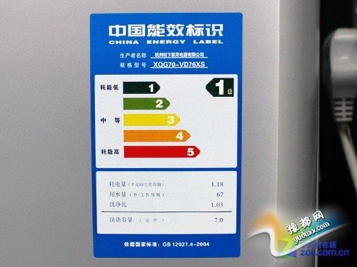 这款松下7kg滚筒洗衣机达到了国家一级能耗标准,额定耗电量为1.18度,额定用水量67L,洗净比达到了1.03,表现出色。