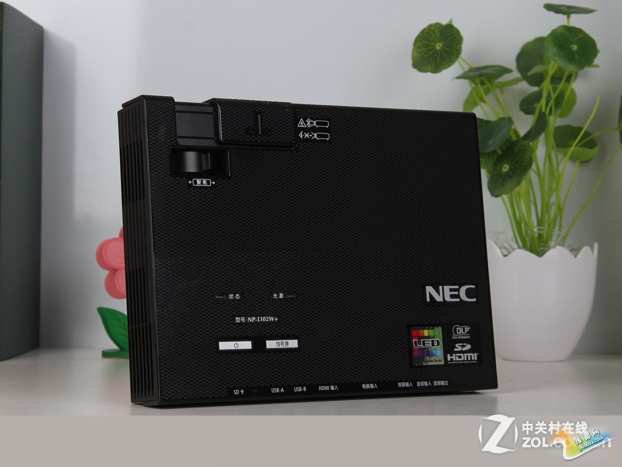 NEC L102W+在接口方面,L102W的配置相当完善,VGA、USB、HDMI、SD卡槽等接口一应俱全,可直接连接SD卡、U盘、USB线、平板电脑、PC等常用设备,支持wmv、mp3、jpg、pdf、Ms Office等十几种文件格式,完全覆盖日常办公的各种连接需求。