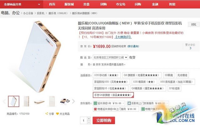 酷乐视新Q6旗舰版是酷乐视今年推出的新品之一,刚在京东商城上市不久。这款智能微投的特点之一便是其超便携性能,被定义为“手机投影伴侣”。能够为用户提供跟手机一样的手感以及手机无法比拟的大尺寸投影屏幕。