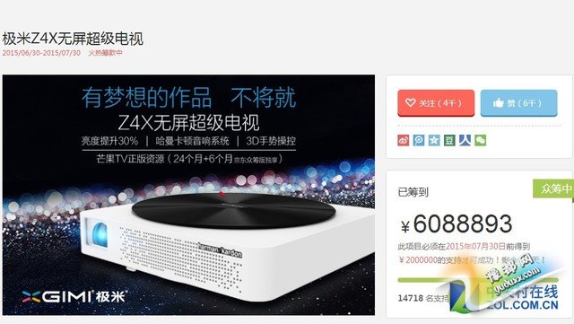 极米Z4X是极米科技2015年发布的高端新品,这款智能微投采用双光路设计,将产品亮度在原来的基础上提升了30%以上。机身具备S8光机引擎,是微投技术领域的一大创新突破。目前该微投正在京东众筹平台举行众筹活动。