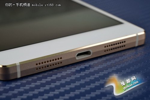 大神X7的底部使用类似iPhone的对称式开孔处理,其实实际上左面是话筒麦的开孔,而右面是声音外放的开孔。