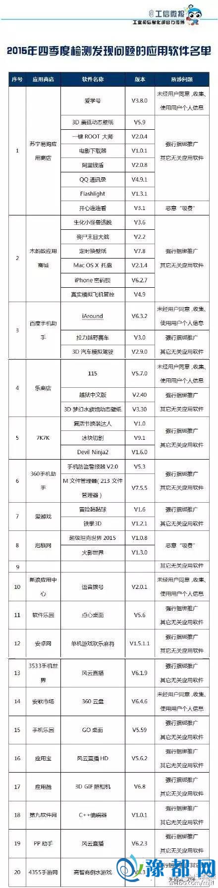 话费莫名其妙就没了?经常接到骚扰电话?可能都是因为它们!工信部昨天公布的电信服务质量通告显示,四季度技术检测,共发现不良软件41款,涉及违规收集使用用户个人信息、恶意“吸费”、强行捆绑推广其他无关应用软件等问题。