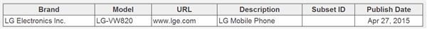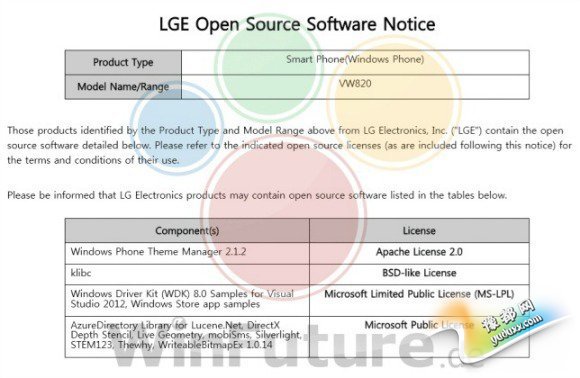 日前代号为LG VW820的设备已出现在它们旗下的开源授权网站中。同样,德国网站Winfuture.de同样发现LG VW820通过了蓝牙技术联盟的认证,也说明它离发布不远了。