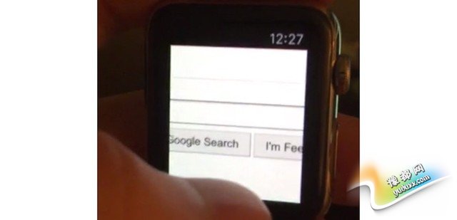 Comex通过视频分享了自己的成果,并表示使用Apple Watch浏览网页确实不切实际。从图片中我们可以看到,Google主页无法完美适配Apple Watch的屏幕。此外Comex还表示,Apple Watch无法调出Copy/Define按键,非常不方便。