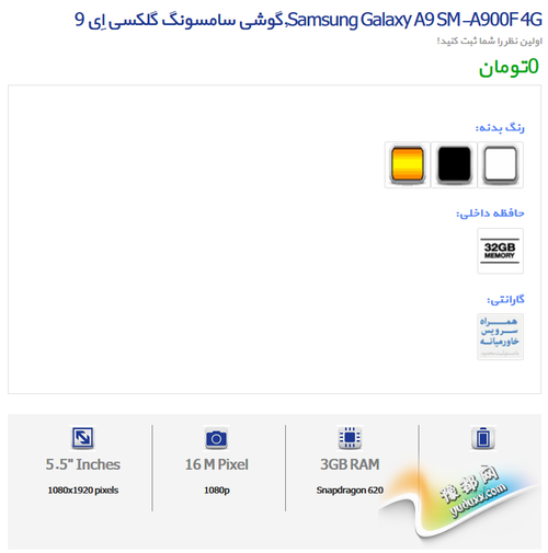 据外媒Phone Arena报道,三星Galaxy A系列新机A9现身三星伊朗官网,预计会在12月1日发布。年底前,这款手机将登陆更多国家和地区。