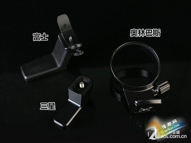 而另外一些小设计,来自日本的厂商则体现出了长期制造经验的优势。这点在镜头的三脚架环设计部分可以很好的看出。我们可以看到(如上图)三星镜头的脚架环拆卸效率虽然也较高,但是卸下脚架环的部分对手持负担的减轻可以说是没什么作用。脚架环的可拆卸其目的一方面是为了便于携带,另一方面则是减轻手持时的重量负担,这方面三星仍需通过学习来改进。
