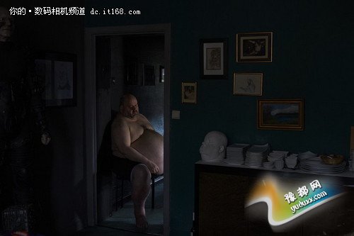 摄影师描述图中的胖子Philippe Genion因为害怕他的邻居而躲在家里。但事实上这位在当地出名好脾气的邻居根本就是很平和地呆着,并时常乐意这样赤裸上身。而照片上呈现的效果是摄影师通过灯光所营造的紧张的氛围。